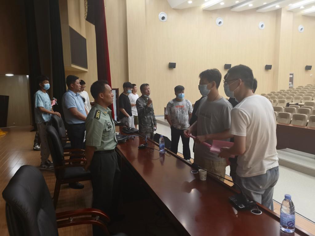 国无防不立,民无兵不安。为进一步加强国防教育,增进广大师生爱国热情,根据本年度国防教育暨征兵工作安排,5月26日下午,学校在龙湖校区东辅楼报告厅举办了2021年国防教育暨大学生征兵政策解读专题报告会。蚌山区人民武装部政委刘跃、部长曾鸣受邀为师生作报告。校人武部负责人、龙湖校区各学院征兵联络人、毕业班学生和全体辅导员以及有意向参军的同学参加了此次报告会。会议由校人武部副部长邵传雷主持。