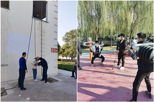 凤阳县消防救援大队琴音路消防站副站长徐鹏为我校师生详细讲解各种消防器材的功能及使用方法、各型消防车辆的特征和用途等;消防员现场演示了消防高楼攀爬和六米拉梯等训练科目。同学们还参观了消防大队风雨训练场、消防训练器材、营房及消防展览馆,并在消防救援大队工作人员的指导下亲身体验了消防器材和技能操作。