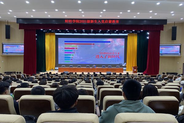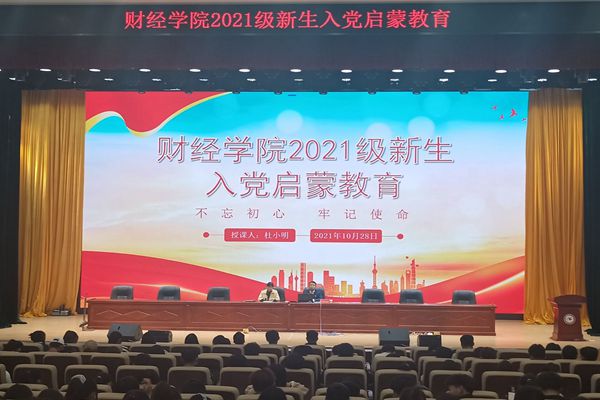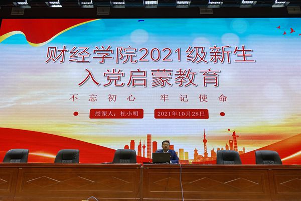 为加强新生对党的认识和了解,提高新生思想觉悟,引导新生坚定理想信念,积极向党组织靠拢,10月28日,财经学院在东附楼二楼报告厅开展2021级新生入党启蒙教育。学院党委书记杜小明担任主讲,学院全体辅导员和2021级全体新生参加。