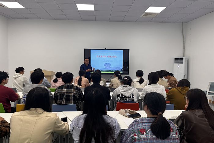 毛主席诗词是常读常新、常悟常新的传世经典。黄钦海以时间为轴,详细解读毛主席从少年到晚年共四个时期所创作的诗词。44首诗词,生动记录了伟人一生的奋斗足迹,形象地寄寓了中国共产党领导全国各族人民救亡图存和励精图治的价值取向与使命担当,深刻展示了中国梦的理想境界、精神特质和人间正道。在黄老师的带领下,同学们深刻感受伟人笔下的宏伟气概与那段峥嵘岁月,感受伟人的博大胸怀、恢弘气度、家国情怀和人民至上。讲座催人奋进、同学们热血沸腾,大家在领略了伟人经典诗词魅力的同时,使命感和责任感油然而生。