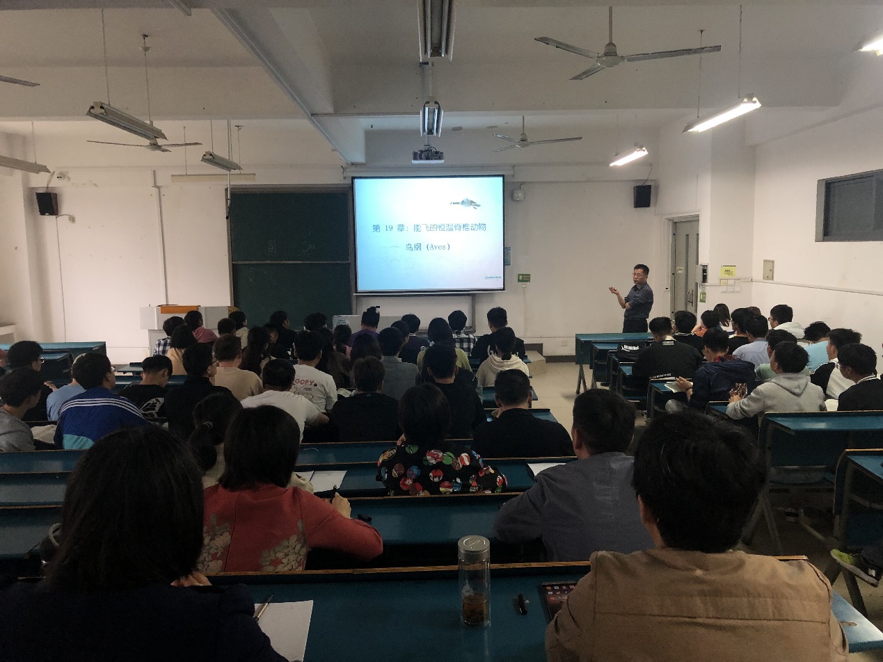 王松教授本次课堂教学的主要内容为《动物学》课程中的“能飞的恒温脊椎动物-鸟纲”。公开课上,王老师先是回顾上一节课程,既夯实学生知识,又巧妙的引出本节课内容,激发学生学习兴趣。随后的主要教学内容,通过深入浅出的讲解,丰富图片的展示,加强学生对课程内容的认识和理解。从生物特征到生活习性,生动幽默的带领大家走进了一个鸟类世界。课程内容精熟,教学投入饱满,语言诙谐幽默,同时又将课程讲授内容与生活实际相结合,极大的调动学生积极性,取得了良好的教学效果。