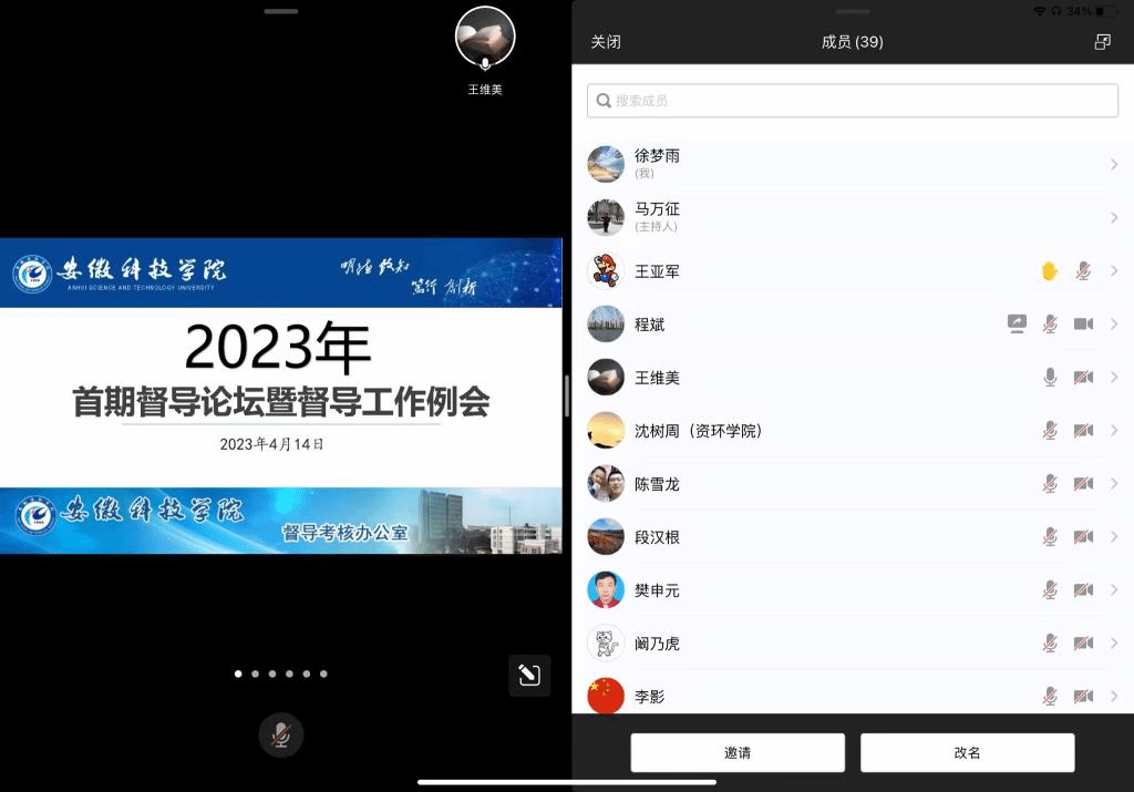 为加强教学督导与教学质量监控工作、保障学校教学工作顺利进行,提升教育教学质量,4月14日下午,督导考核办公室利用腾讯会议平台,举行首期督导论坛暨教学督导线上工作会议,全体校督导员、院督导组成员及督导考核办公室工作人员参加了会议,会议由督导考核办公室主任程斌主持。