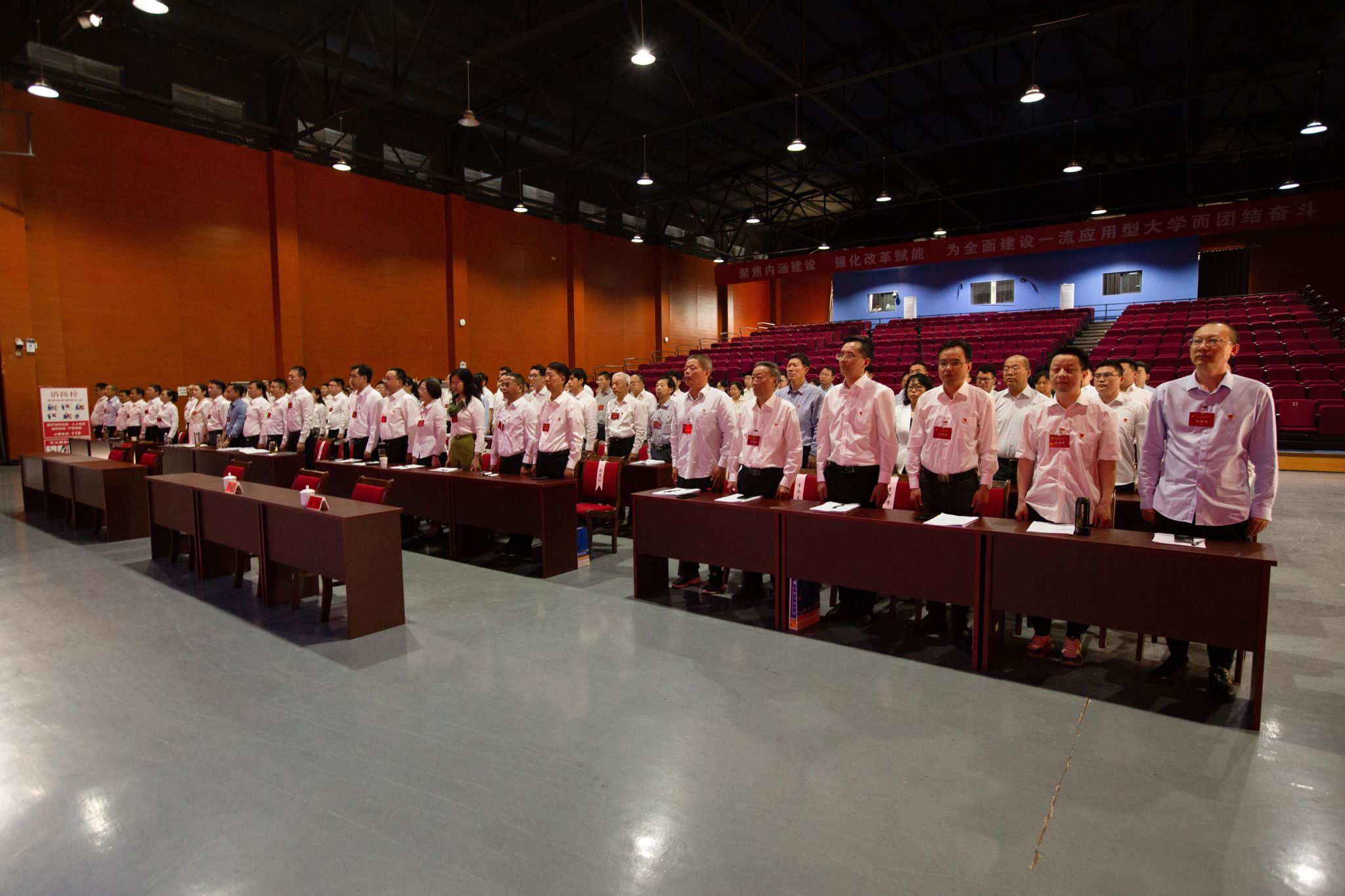 时伟代表新一届党委庄严承诺:将不忘初心、牢记使命,衷心拥护“两个确立”,坚决做到“两个维护”,在上级党组织的坚强领导下,紧紧依靠全体党员干部,紧密团结全校师生员工,以更加强烈的责任感和使命感,牢记重托,加压奋进,为把学校早日全面建成特色鲜明、优势突出的现代化全国一流应用型大学而不懈努力。
