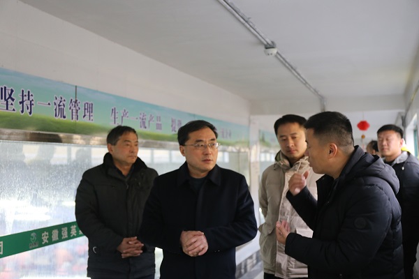 在安徽新六养殖有限公司,姚勇一行听取了公司总经理郭家明、太和公司经理周述刚关于公司发展、员工发展渠道及毕业生需求情况的介绍,姚勇感谢公司为毕业生提供良好就业平台,双方就加深人才培养合作等方面进行了深入探讨。