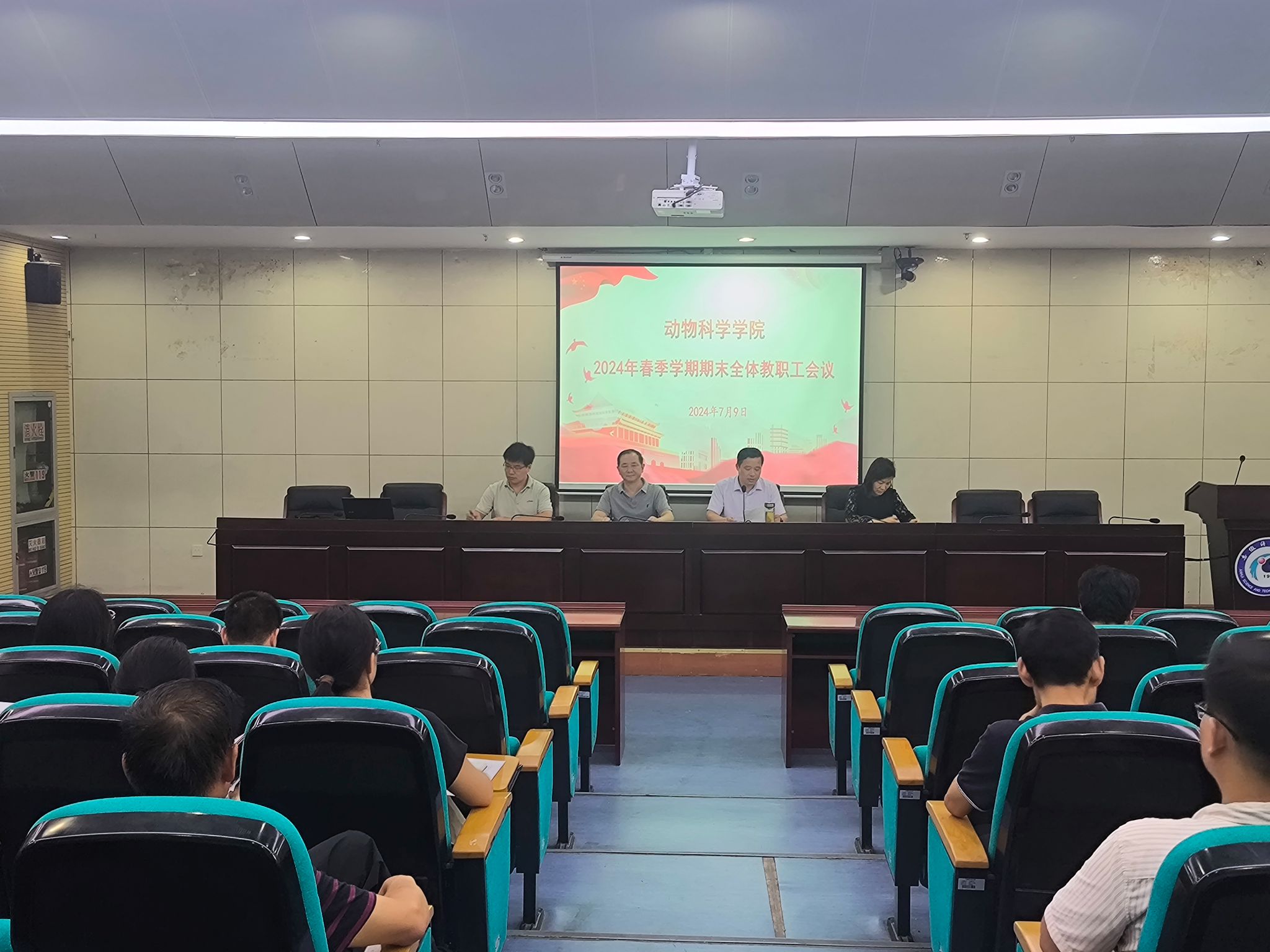 7月9日下午,动物科学学院2024年春季学期期末全体教职工会议在会议中心一楼报告厅召开,对本学期主要工作进行总结,并对暑期重点工作进行安排部署。学院党政领导及全体教职工参加会议,会议由学院党委书记、副院长程斌主持。