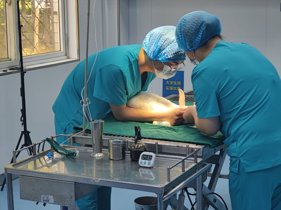 5月26日,第七届“雄鹰杯”小动物医师技能大赛在三亿网页版附属兽医院手术室完成理论和实验操作考核,其中理论考核采用线上专业考核系统,随机抽取试卷进行作答;实验操作考核包括兔胃切开术、血涂片制作和徒手打结。