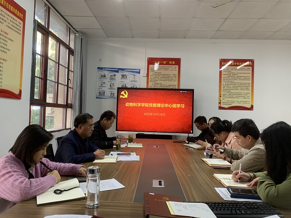 10月18日下午,动物科学学院党委理论学习中心组召开专题学习扩大会议,就习近平总书记在中国共产党第二十次全国代表大会上的报告进行集中学习研讨。中心组全体成员、党支部书记参加学习,会议由学院党委书记姚勇主持。