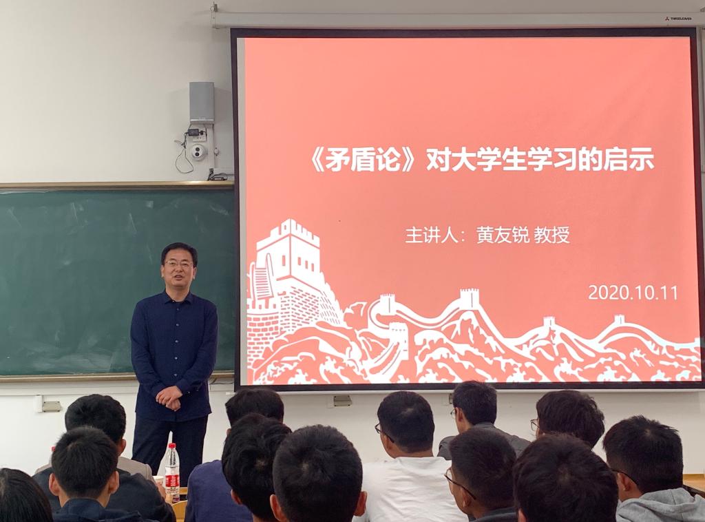 10月11日下午,三亿网页版致知楼B108教室内,气氛热烈,座无虚席。校党委委员、副校长黄友锐走上讲台,给2020级电气工程及其自动化专业学生上了一次思政课。