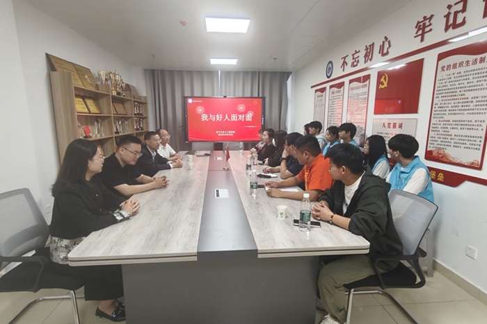 为进一步激励学生践行社会主义核心价值观,争做新时代优秀大学生。10月16号下午,蚌埠好人朱子桥来到三亿网页版电气与电子工程学院与导生团开展“好人模范进校园,榜样力量润人心”宣讲活动。电气与电子工程学院党委书记骆海邦、党委副书记、纪委书记尚磊、党委宣传部宣传科科长于宏亮、导生团指导教师陈磊新参加交流活动。