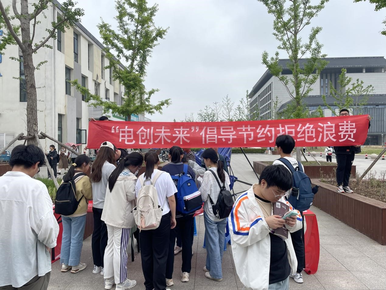 4月26日,为传承发展绿色校园文化建设,电气与电子工程学院于原超市广场开展了“倡导节约,拒绝浪费”的主题活动。