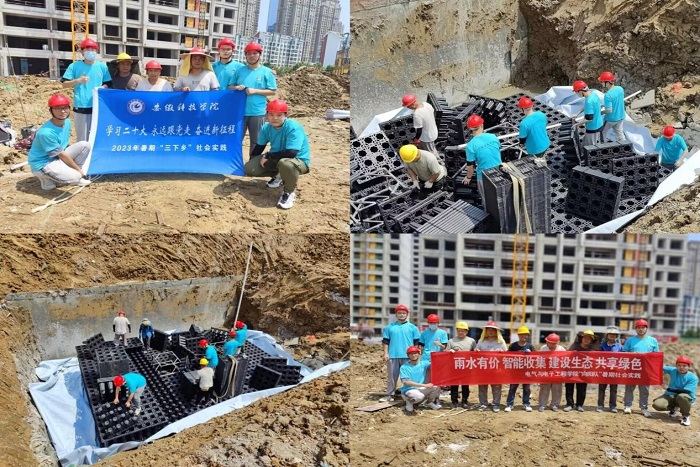 实践期间,在工作人员的讲解下,实践团队了解到智能雨水收集系统是可持续发展的关键组成部分,可以通过收集和利用雨水,减少对地下水和自来水的依赖,从而减少抽取地下水和处理自来水的能源消耗和碳排放。在建筑物和社区中安装这些系统,可以最大程度地利用雨水资源,降低对有限水资源的需求,有助于提高水资源的可持续利用和管理,保证未来代际的水供应。下午,实践团队在指导人员以及工作人员的带领下来到工作现场学习智能雨水收集系统的安装和操作流程,以及掌握码水池、焊布和调控制柜等相关技能。通过现场示范,实践团队学会了如何通过简单的屋顶收水系统将雨水导入储水设备,并使用简单的过滤装置来确保储存的雨水清洁,掌握了码水池、焊补和调控制柜等技能,加深了对智能雨水收集系统的理解和应用。