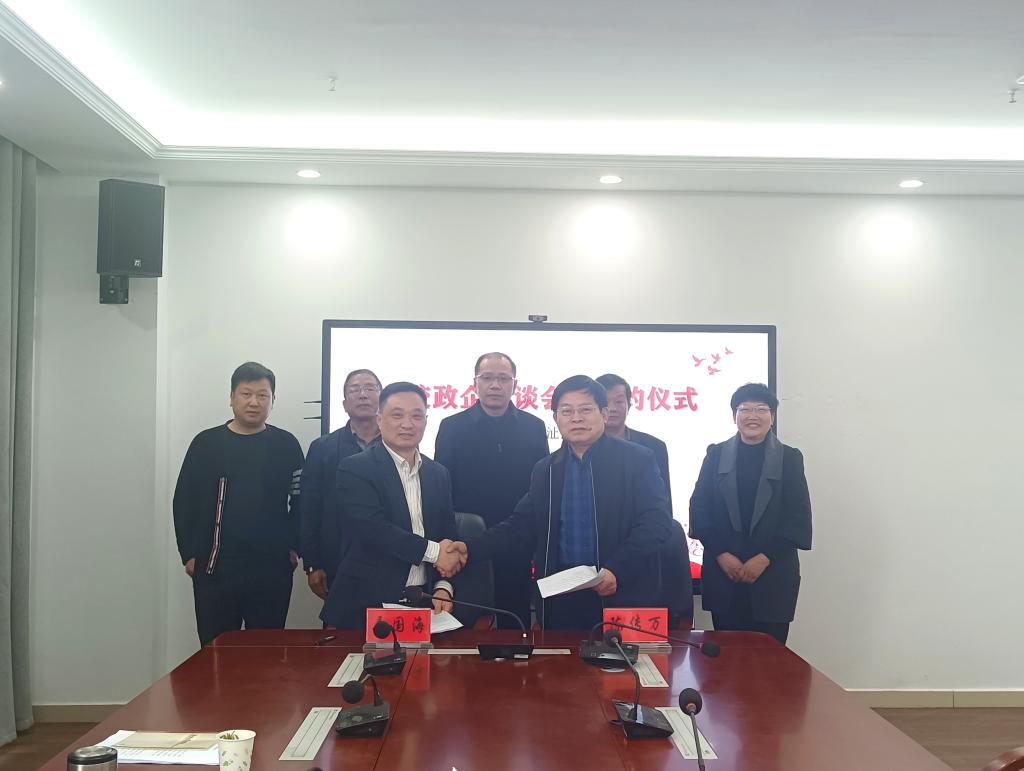 在三方领导的见证下,陈传万与桑国海签署了校企产学研合作协议书。
