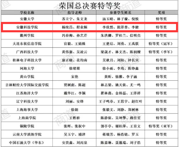 我校由管理学院学生李欣然、熊泽普、李健三名同学组成的“登顶队”战队,经过层层选拔,过五关斩六将成功晋级全国总决赛,与来自全国的128支队伍同场竞技,不畏强手,勇于拼搏,并以行业第一的好成绩进入到答辩环节,与另外7支队伍争夺冠亚季席位,最终获得该赛事全国特等奖。创造了我校在该项赛事获奖级别上的新高。我校管理学院杨续昌、程业炳两位老师也荣获优秀指导教师。
