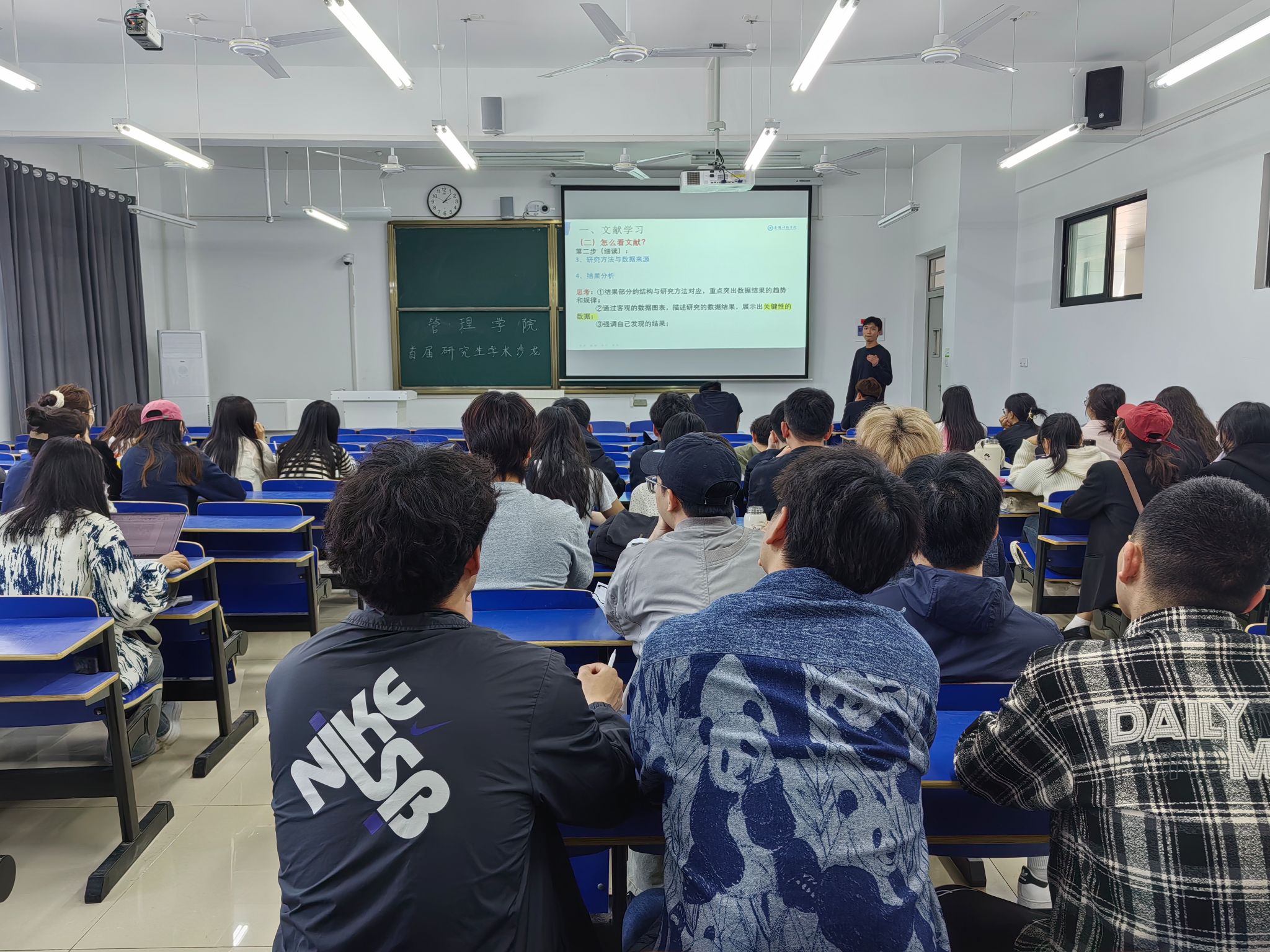 为激发研究生学术热情,营造浓厚的校园学术研究氛围,管理学院于4月24日下午在尚行楼C208开展管理学院2024年第一期研究生学术沙龙活动。本期学术沙龙报告会,邀请农业管理专业2022级袁书冬、2023级魏有文分别分享科研经历及心得。农业管理领域2023级全体在校研究生参加,学术论坛由管理学院研究生辅导员姚姝媛主持。