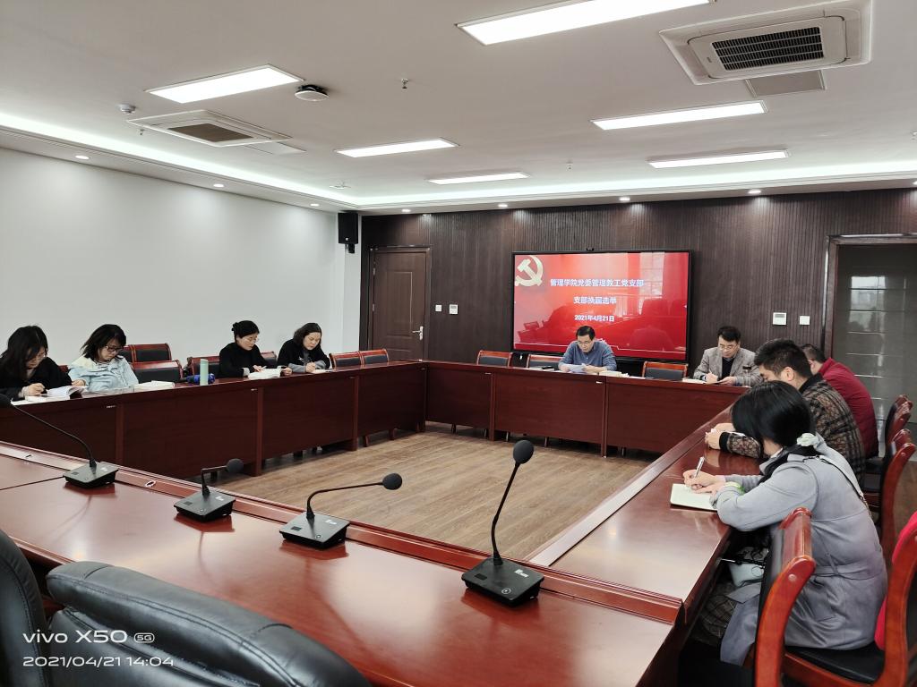 根据学校《中共三亿网页版委员会组织部关于认真做好基层党支部换届选举工作的通知》(组字〔2021〕12号)工作安排,管理学院党委所属各党支部有序组织召开党员大会,顺利完成党支部换届选举工作。学院全体领导班子成员分别参加各党支部换届大会,对各党支部换届工作给予了有力指导。