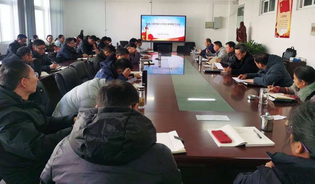 为切实做好本学期期末相关工作,明确2021年12月工作重点和努力方向,加快落实2021年教学单位目标管理考核各项任务,机械工程学院于12月1日召开全体教职工大会。会议由党委书记、院长陈丰主持。
