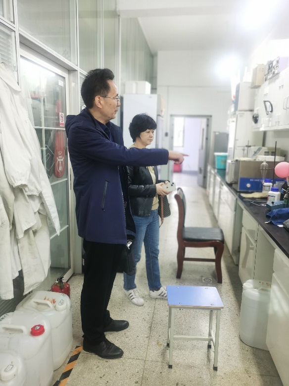 本次检查重在排查实验室可能存在的安全风险隐患,特别对危险化学品管理、实验器材及试剂摆放,实验室水、电、气安全等方面进行全面细致的检查。检查组对实验室进行了逐一检查,通过检查,大部分实验室安全管理工作都有了明显改善,安全制度进一步得到健全。对于实验室安全检查中发现的共性问题如:存在杂物堆放、仪器设备放置不规范等问题,要求各实验室负责人尽快落实整改。同时,李子荣副院长对各实验室负责人提出明确要求,要确保危化品储存和使用得当,按照危化品管理要求,专柜存放、台账规范;要确保用电安全,不得超负荷运转;要确保实验室仪器设备摆放得当,仪器电源要远离水源,钢瓶气瓶远离热源。