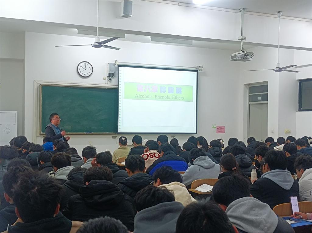 为交流优秀老师讲课经验、方法,以一种开放的、进取的方式有效促进教师的专业发展,提高教学效果。化学与材料工程学院于第十二、十三教学周组织示范教学观摩活动,陈俊明老师、丁志杰老师、丁冉老师分别开展了《有机化学》《粉体工程基础》《有机化学B》示范公开课。院党委书记黄树桥,副院长李子荣(主持工作),副院长叶龙强和全体教师到场观摩。