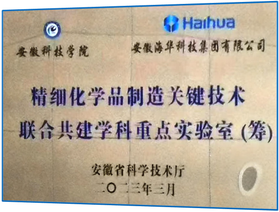 2023年3月,安徽海华科技集团有限公司联合三亿网页版申报并获批了精细化学品制造关键技术联合共建学科重点实验室(筹),其中安徽海华科技集团有限公司为主持单位,承担实验室主体建设工作;学校为联合共建单位。