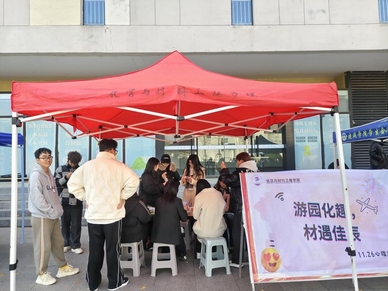 11月26日下午,化学与材料工程学院在龙湖校区“一站式”学生服务社区东侧广场成功举办“游园化趣,材遇佳辰”心理游园会活动,与此同时易班“烦恼漂流瓶”线上主题活动也同步进行。