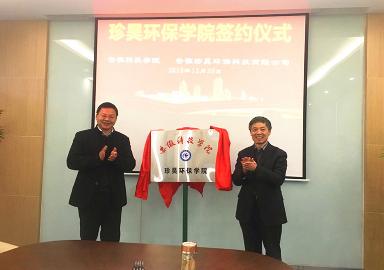 为推进一流应用型大学建设,探索校企合作新模式,经校企协商,12月30日下午,我校“珍昊环保学院”成立揭牌仪式在安徽珍昊环保科技有限公司举行。校党委书记蒋德勤出席仪式并讲话。校教务处处长宋常春,资源与环境学院党总支书记李孟良、院长肖新、副院长李孝良、院长助理谢越、环境与科学工程系主任范行军、土壤与环境中心朱琳,安徽珍珠水泥集团股份有限公司董事长高峰、服务部部长王益春、办公室主任范志华及安徽珍昊环保科技有限公司总经理陈成侠等出席了活动。仪式由范志华主持。