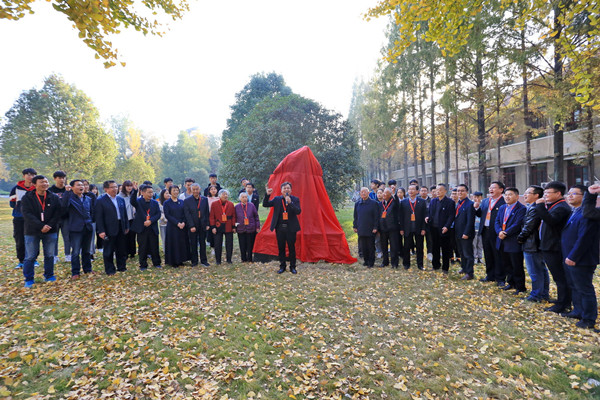 在一片热烈的掌声和欢呼声中,刘正和湖南隆平营销总监刘俊校友等为景观石揭幕。