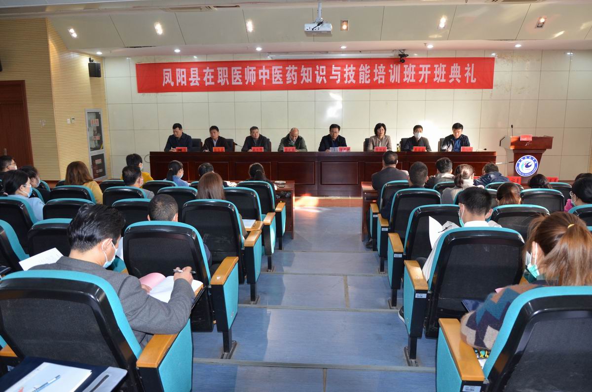 为贯彻落实《安徽省中医药条例》和《关于印发安徽省第一批重点监控合理用药药品目录(化药及生物制品)的通知》(皖卫医秘〔2019〕245号)文件精神,凤阳县卫健委委托我校和凤阳县中医院合作,开展全县在职医师中医药知识与技能培训,11月14日上午8点半,在我校凤阳校区图书馆一楼报告厅举行了凤阳县在职医师中医药知识与技能培训班开班典礼。党委委员、副校长黄友锐,凤阳县副县长缪传凤、安徽中医药大学督导员(原亳州职业技术学院院长)方成武、凤阳县卫健委主任吴家会、副主任李宏伟、陈浩、凤阳县中医院院长卢红术、副院长盛长健,我校生命与健康科学学院院长鲍方印、继续教育学院院长杨维来、副院长张敬强及88名凤阳县一线基层医务人员等参加了开班典礼,典礼由杨维来主持。