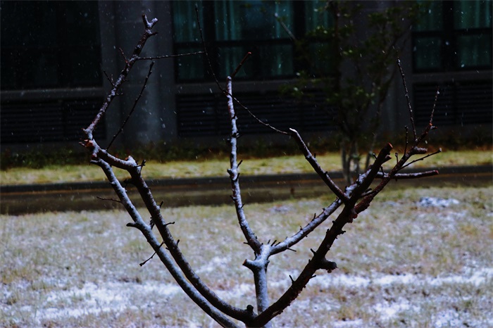 在皑皑的白雪里,世间万物的颜色变得更加鲜明活泼。常青树在这番洗礼后仿佛换了一身新衣裳,整个儿打起精神来,像是守护冬日的骑士;红果子也丝毫不显逊色,在白雪的映衬下平添了几分可爱;纷纷扬扬的雪花也让校园多了些朦胧美。