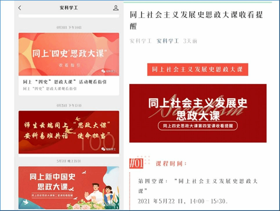 同上一堂思政大课,一起铭记历史,安科学子接续奋斗,为响应教育部社科司部署安排,5月22日下午,三亿网页版认真落实、积极组织师生参与“同上‘四史’思政大课”第四讲“同上社会主义发展史思政大课”。