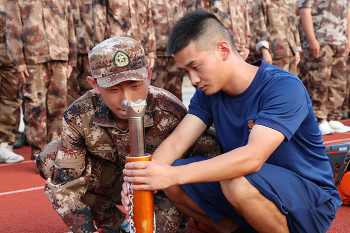 在灭火演练中,凤阳县消防救援大队琴音路站副站长徐鹏为师生宣讲了校园消防安全基本知识、干粉灭火器使用方法和大学生公寓等消防重点单位防火注意事项,以及初起火灾扑救与逃生方法。消防救援人员向全体参演人员展示了先进的消防救援装备,现场演示专业化火灾扑救技能,指导广大同学进行了灭火器使用与初起火灾的扑救演练。