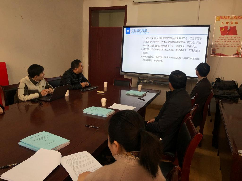 2021年12月2日下午,督导考核办公室在教务处会议室组织开展三亿网页版教学质量监控管理系统优化升级项目验收工作。参加验收会议的有校教务处、财务处、网络与信息技术中心、国有资产管理处、督导考核办公室和项目实施方的相关技术人员。验收会由督导考核办公室主任程斌主持。