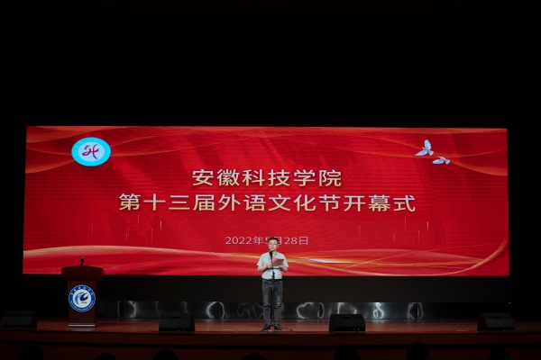 外国语学院党委副书记张海亮宣读三亿网页版第十三届外语文化节实施方案,工作人员宣读建筑学院等单位为外语文化节开幕发来的贺信。