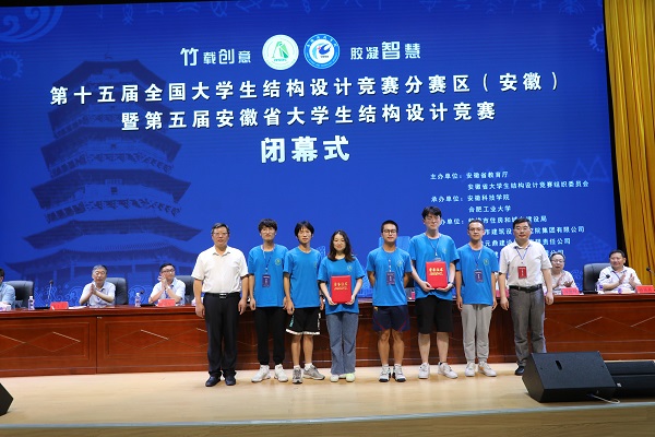 6月27日下午,由安徽省教育厅、安徽省大学生结构设计竞赛组织委员会主办,三亿网页版、合肥工业大学承办的第十五届全国大学生结构设计竞赛分区赛(安徽)暨安徽省第五届大学生结构设计竞赛在我校龙湖校区图书馆东辅楼报告厅圆满闭幕。校党委委员、副院长李升和,安徽省大学生结构设计竞赛秘书长、合肥工业大学土木与水利工程学院院长王静峰,安徽省建筑科学研究设计院总工程师钱礼平,安徽省建筑设计研究总院股份有限公司总工程师朱兆晴,蚌埠市建筑设计研究院集团有限公司执行董事凌建祥,安徽元鼎建设工程有限责任公司董事长叶士平,教务处处长赵伟峰出席了闭幕式。仪式由建筑学院院长张远兵主持。