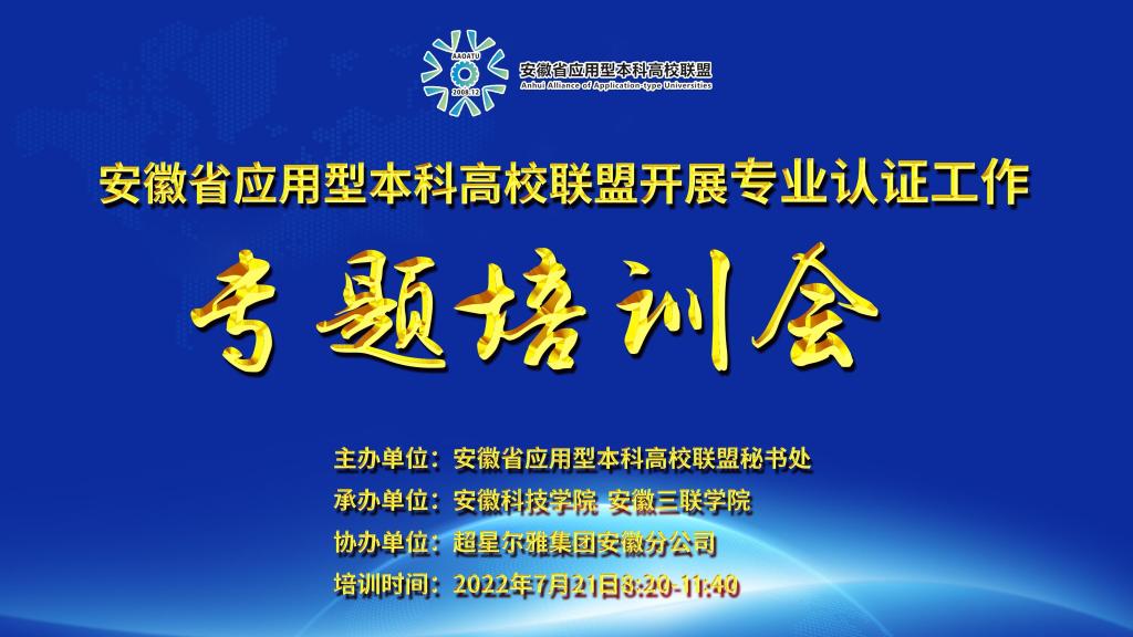 7月21日上午,由安徽省应用型本科高校联盟主办,三亿网页版、安徽三联学院承办,超星尔雅集团安徽分公司协办的安徽省应用型本科高校联盟专业认证专题培训会在我校成功举行。本次会议采用直播形式进行线上培训,来自安徽省应用型本科联盟24所高校负责专业认证工作的职能部门负责人,相关专业负责人、骨干教师和相关工作人员近600人参会。会议由教务处处长赵伟峰主持。