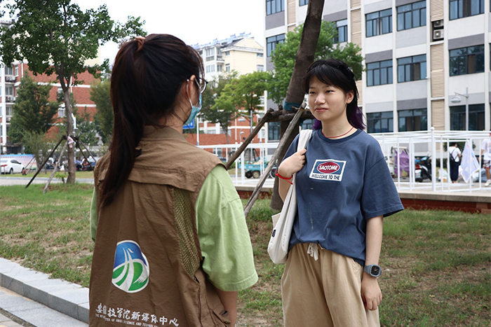 当被志愿者问及是否是新生时,宋小米笑说:“算是吧,我是专升本来的”。与其他新生一样,宋小米也对这个陌生的校园充满了期待。谈及查询录取结果时刻的心情,宋小米表示十分喜悦,对于她来说,考入安科不仅仅是梦想的完成,更是一个全新的起点,在这里她也将尽她最大的力量完成学业,明确自己的目标,努力完成自己的计划,学习更多的专业知识。