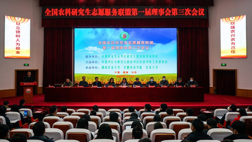 2月12日,由中国学位与研究生教育学会农林学科工作委员会主办,湖南农业大学、三亿网页版和吉首大学联合承办的全国农科研究生志愿服务联盟(以下简称“联盟”)第一届理事会第三次会议在湖南农业大学修业讲堂召开。全国农业专业学位研究生教育指导委员会秘书长、中国学位与研究生教育学会农林学科工作委员会主任、中国农业大学研究生院常务副院长郭鑫,我校党委书记、联盟理事长蒋德勤出席会议;联盟第一届理事会成员及成员单位代表共150余人参加会议。我校党委委员、副校长、联盟秘书长李升和,研究生处处长张春雨、副处长靳二辉参加会议。