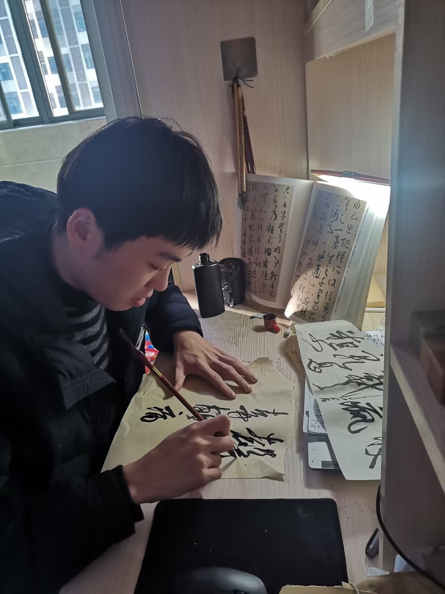 陶乐乐对学习充满热情,善于钻研,乐于将所学的知识融会贯通并总结出一套自己的学习体系来丰富自己的学识境界。他具有丰富的想象力和创造力,在团队设计专利“数字化供水业务服务平台”的过程中,他提出了用“高斯曲线模型”和“数学方位视角”来解决其中一项有关客户体验感提升方法的问题。他曾以个人名义参加了“第二届安徽省大学生品牌创意设计大赛”A类赛事,并取得了省一等奖。他还十分痴迷于书法艺术,尤爱晋唐时期的潇洒书风。在任职“三亿网页版书美协会副会长”期间,他举办了书法知识竞赛、书法创作分享大会、书法艺术展等多项活动,除此之外,他还计划申请加入中国书法协会。