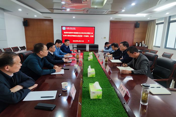 为全面落实乡村振兴战略,加快“科技小院”“安徽省科技特派团(利辛)”“生猪一二三产业融合发展协同服务中心(利辛)”等项目建设,更好优化县域产业结构,加快推动利辛县经济社会持续健康发展,4月21日下午,利辛县委常委、副县长王林兵,利辛县农业农村局局长陈华,安徽禾丰食品有限公司董事长高亚飞,安徽工业大学计算机科学与技术学院党委副书记、院长吴宣够等来校考察并进行产学研合作交流。我校党委委员、副院长李升和出席会议,科研处副处长李同杰、研究生处副处长靳二辉等相关单位负责人和教师参加会议。