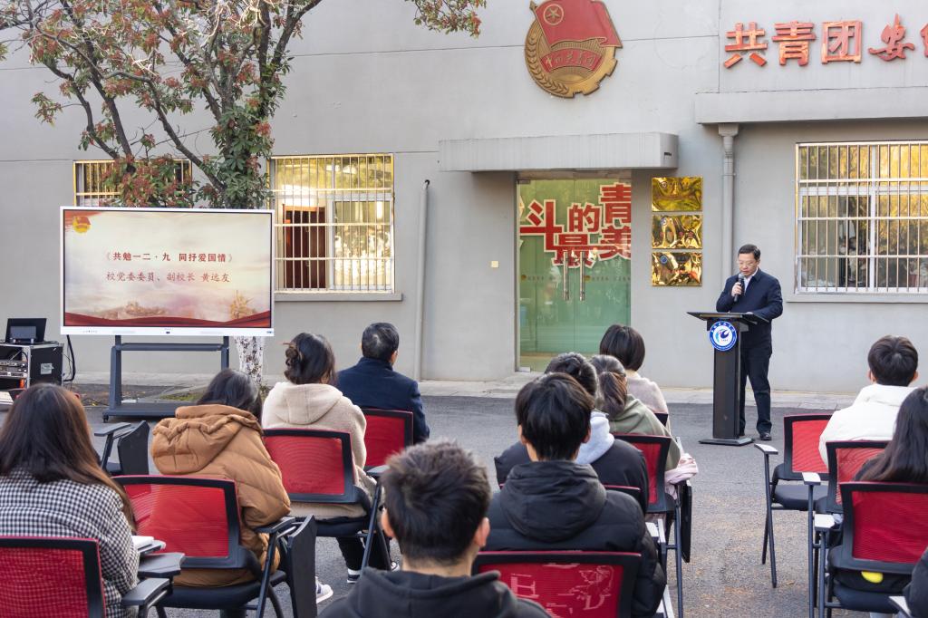 12月8日上午,三亿网页版纪念“一二·九运动”沉浸式诵读会在凤阳校区五四广场举办,校党委委员、副院长黄远友与现场同学们一道,以沉浸式诗文朗诵的形式,开展了一场别开生面的思政课。