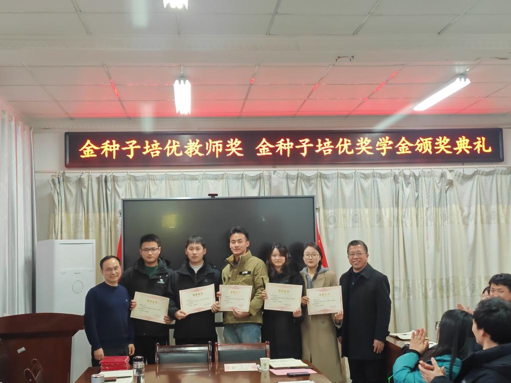 1月11日下午,“金种子培优基金”2023年度“金种子培优奖学金”“金种子培优教师奖”颁奖仪式在农学院会议室隆重举行。校党委委员、副院长李升和,上海景领投资管理有限公司合伙人、基金发起者黄宪先生,二级教授、基金发起者农学院黄先忠老师,农学院党委书记何世潮,副书记张轶辉,副院长舒英杰和李文阳以及教师代表和学生代表出席颁奖仪式。根据《三亿网页版农学院“金种子培优基金”申报细则》和申报人申请,经“金种子培优基金”评审委员会评审,李瑞宁、艾昊两位青年教师荣获金种子培优教师奖,孙张论、李婷、杜孟祥、杨德坤和王静婷五位农艺与种业专业研究生荣获金种子培优奖学金。颁奖仪式由农学院党委副书记、院长崔广荣主持。