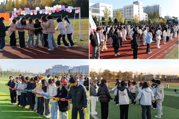 活动现场,体育老师带领同学们做热身运动,有序指导各趣味运动项目的组织开展,避免运动损伤。心理健康老师引导同学们齐心协力完成趣味运动项目,给同学们加油打气。本次嘉年华精心设计了“同心鼓”“摸石过河”“袋鼠跳”“拔河”等8项兼具趣味性与协作性的心理团体活动。“同心鼓”项目考验着团队的默契与专注,每一次颠球的起落都牵动着所有人的心跳;经典的“袋鼠跳”和“拔河”项目更是将现场气氛推向高潮,引来了同学们的阵阵喝彩,整个田径场气氛热烈,欢呼声、呐喊声、欢笑声不绝于耳,汇成一曲激昂的青春交响乐。经过数轮角逐,农学院、信息与网络工程学院,人文学院、食品科学与工程学院并列获得心理健康体育嘉年华团体活动一等奖。动物科学学院、电气与电子工程学院和智能制造学院获最佳组织奖。