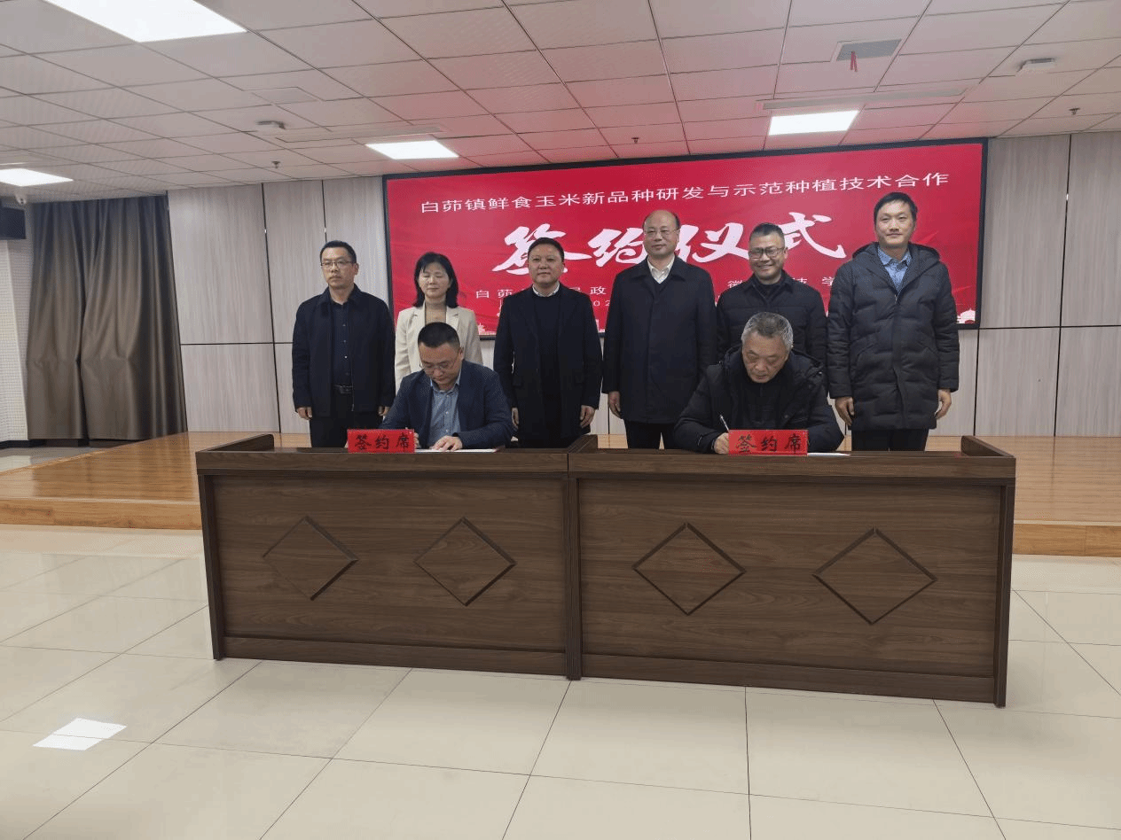 12月30日上午,我校与芜湖市鸠江区白茆镇鲜食玉米新品种研发与示范种植技术战略合作签约仪式成功举行。校党委委员、副院长王孝义,芜湖市鸠江区委书记、区长黄万勇,芜湖市农业农村局副局长王绎华,鸠江区政府副区长蔡金平,鸠江区农业农村局局长韩刚,白茆镇党委书记汪赵平,农学院党委副书记、院长崔广荣,余海兵教授等有关人员出席仪式。
