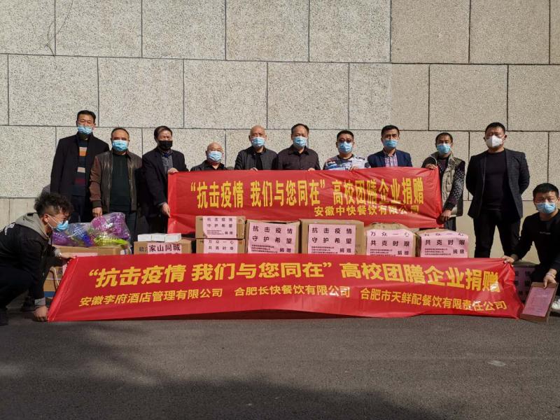 截止目前为止,在校服务的餐饮企业共捐献价值 31400元的防控物资,其中黄山大厦酒店管理集团有限公司捐献价值 7530 元的防控物资,安徽中快餐饮有限公司捐献价值 9200元的防控物资,安徽李府酒店管理有限公司、合肥长快餐饮有限公司、合肥天鲜配餐饮有限责任公司三家企业联合捐献价值14670元的防控物资。(特约通讯员:李香云 编辑:汤帅)