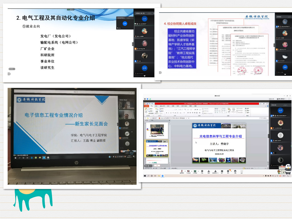 为促进家长和2020级新生更加深入了解大学学习和生活,实现“家+校”零距离沟通,9月15日下午,电气与电子工程学院组织召开2020级新生线上家长会。院长章毛连、党总支副书记尚磊、院长助理国海教授、电气工程教研室主任周小杰,青年教师代表樊晓宇博士、王磊博士、及新生辅导员韩新风、张深、洪乃羽等出席会议。