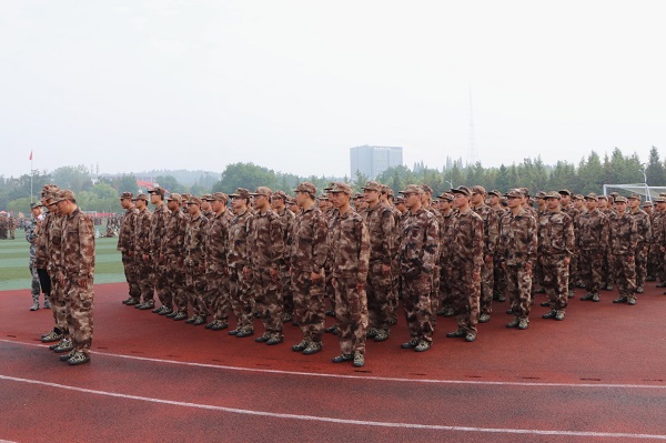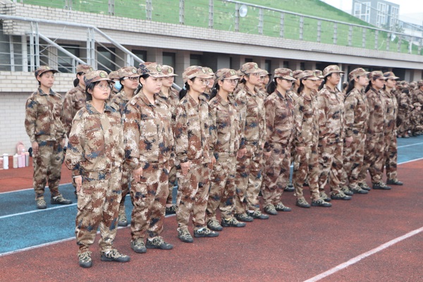 一踏入操场,就可以看到一群身穿迷彩服的活力青年整齐的站着军姿,喊着响亮的口号,唱着激昂的军歌。“齐步——走”教官铿锵有力的声音在操场上回荡。