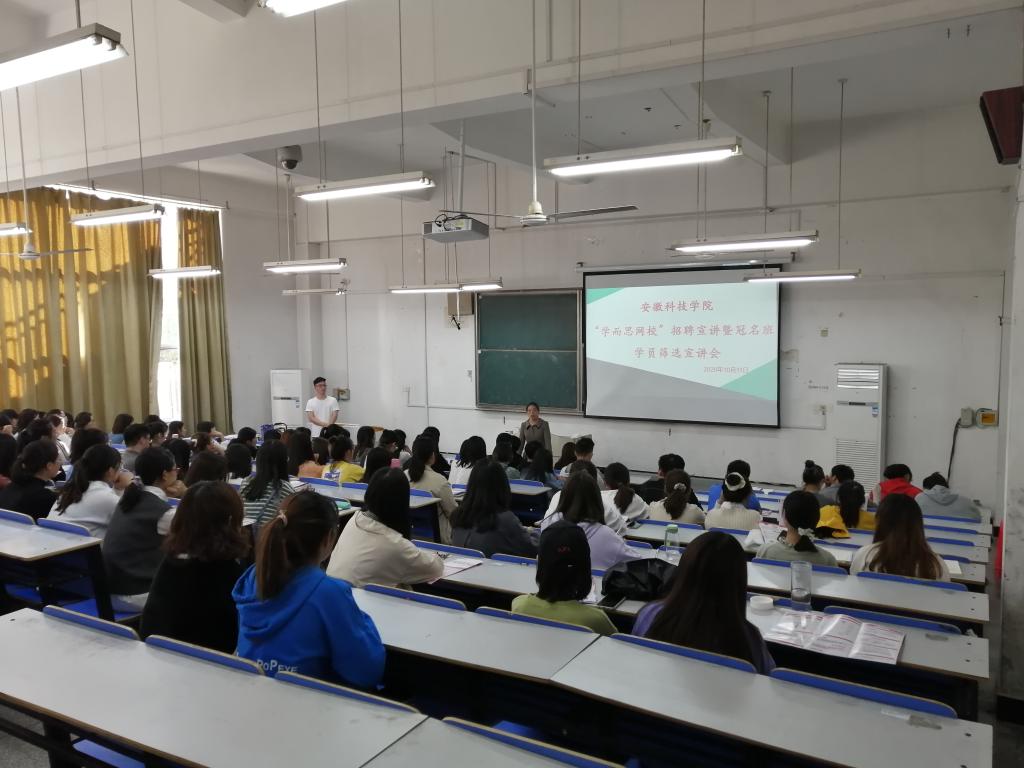 为帮助同学们提前了解在线教育行业的发展现状和未来职业能力需要,加深对教育行业的认识。外国语学院于10月11日下午15点在求A106教室举行了三亿网页版“学而思网校”招聘宣讲暨冠名班学员筛选宣讲会,特邀中国好未来教育旗下“学而思网校”合肥校区安徽地区负责人武嘉豪经理做宣讲,招聘经理蔺一峰、张旭、张译丹参会,学院党总支书记蔡为青、专职辅导员宋兵兵出席本次宣讲会,学院17、18、19、20级部分同学参会,本次宣讲会由宋兵兵主持。