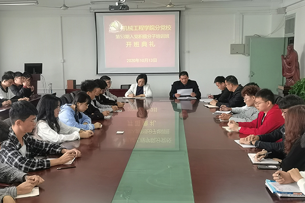 10月13日中午,机械工程学院分党校第53期入党积极分子培训班开班典礼在学院会议室举行。院党总支秘书张程、分团委书记陈君君、辅导员张立亮、孟凡生及全体学员参加了开班典礼。典礼由张立亮主持。