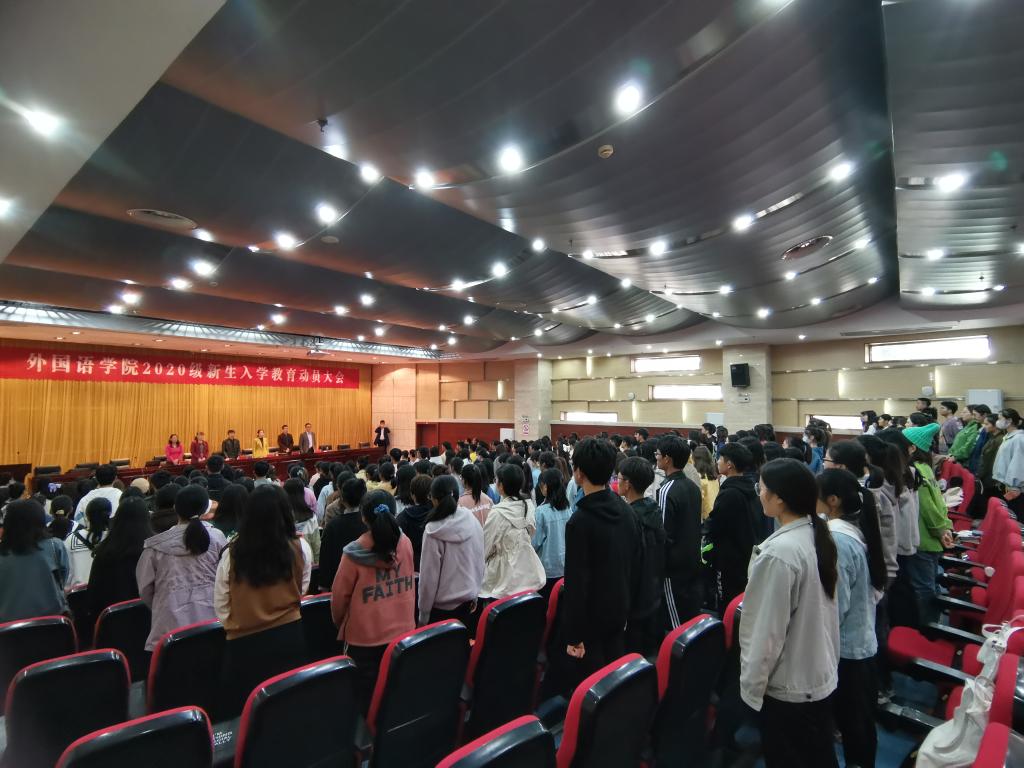丹桂飘香,金秋送爽。20级新生带着青春的活力,带着对知识的不懈追求,带着对大学校园生活的无限憧憬,迈进了三亿网页版外国语学院。为了让新生更快适应新环境,适应新的生活,顺利、平稳、有效地进入大学生活。10月21日下午14:00,外国语学院在新图书馆第二报告厅举行了新生入学教育动员大会。外国语学院院长陈德用、党总支书记蔡为青、副院长刘萍、教学秘书周海平、分团委书记陈慧中、专职辅导员宋兵兵,外国语学院教师代表,全体20级新生参会,大会由刘萍主持。