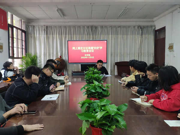 之后,网上重走长征路暨“四史”学习教育会议也一并展开,汪道兵积极传达了文件《关于组织开展“网上重走长征路”暨推动“四史”学习教育工作的通知》的有关精神,要求各班班长带动同学们学好党史、新中国史、改革开放史和社会主义发展史这“四史”,要在今后的学习生活中系统研读“四史”材料,准确把握党的领导这一主线,不断深化“四史”学习教育,切实增强在实践中守初心、担使命的思想自觉和行动自觉。(特约通讯员:张轶辉 审核:沈树周 编辑:汤帅)