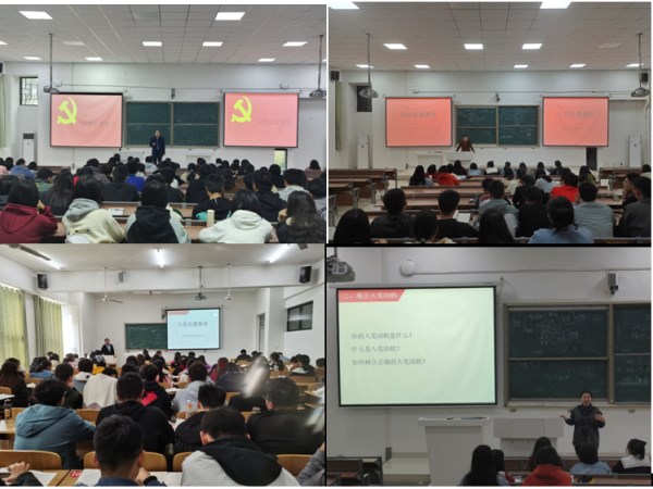各主讲人分别从入党动机、入党条件、入党程序以及规范撰写与入党相关的各类材料等方面给新生做了全面介绍,与同学们进行了良好的互动交流,希望同学们严于律己、勤于学习、勇于担当,以实际行动向党组织靠拢,通过自身不懈努力早日加入中国共产党。最后,他们对新同学提出具体要求:一是要始终努力学习,要把学习当做一种习惯、一种发自内心的行动自觉,打牢基础、学好专业,不断提高自身综合素质。二是要始终严于律己,积极带头践行大学生日常行为规范,不断塑造优良品质。三是要加强对党的基础理论知识的学习,不断端正入党动机。